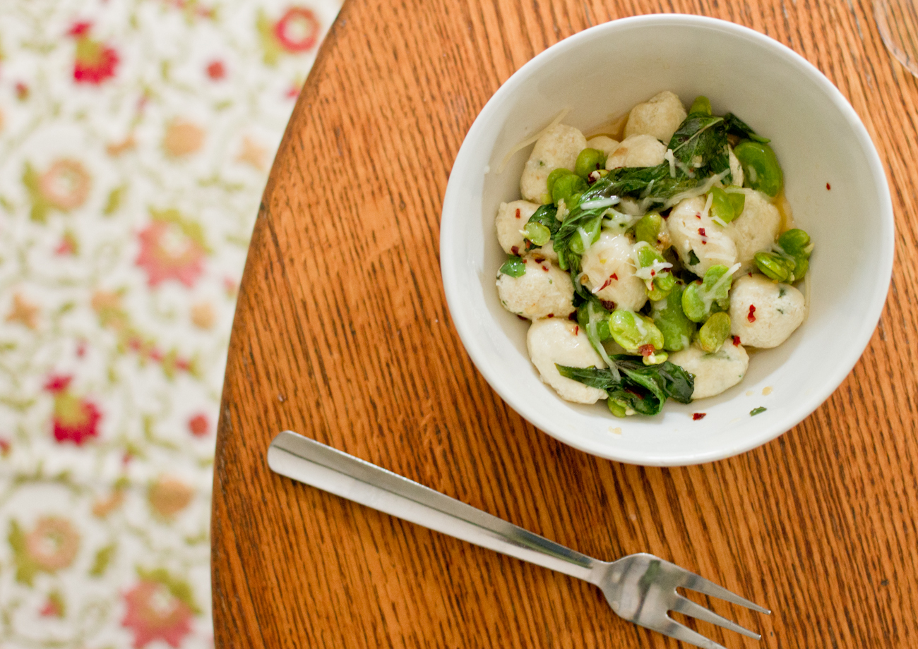 Once you drop these into boiling water, let them sit there until they float to the top. When that occurs, let them cook for about two minutes more. Scoop the cooked gnudi out and combine them with the butter/fava bean mixture (in the recipe below…). Eat up, and enjoy!