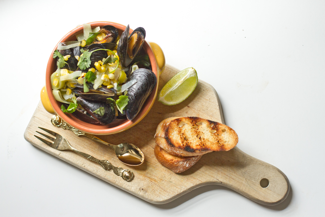 That’s when the idea struck me: combine local peaches with fresh mussels in a dish that celebrates all things summer, by welcoming in autumn’s bounty.
