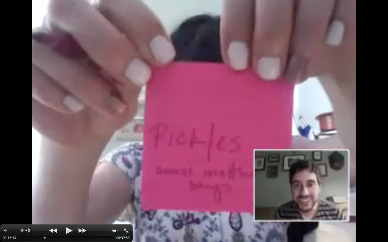 Joy: (Joy holds up pink post-it note) Pickles because Matthew says. I was supposed to make chamomile soda today. But I didn’t. I made beer yesterday. I’m obsessed. Have you ever made beer before?!