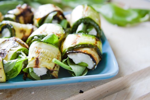 1. Grilled zucchini rolled with fresh farmer’s goat cheese, baby spinach and basil.