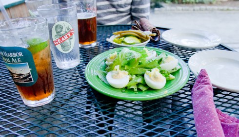 We met our new waitress (who was equally as enjoyable as the inside waitress we abandoned moments earlier) and I knew it was going to be a good experience. She had on a flowy dress with cowboy boots and some cute hair accessories. Her personality matched her impeccable style and I wanted to be her best friend. She was one of the people I interacted with up there who made it easy for me to convince myself that my inevitable living in Maine would be an easy transition to make. We got right to the good part after exchanging pleasantries and ordered our food. Deviled eggs for an appetizer.