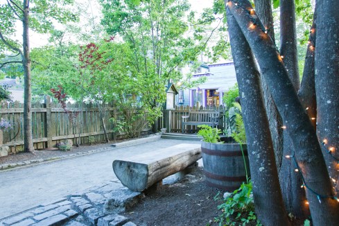 Our drinks arrived and I had a sip. I had really grown to enjoy the taste of this particular blueberry ale. I noticed that the table I had been stalking through the window was in fact leaving as I had been predicting in my head. I jumped on the chance to grab it away from anyone else that may have also been surveying the table in the manner I had been. We were seated adjacent to the bocci court and beneath a group of trees strung with lights. Dinnertime perfection.