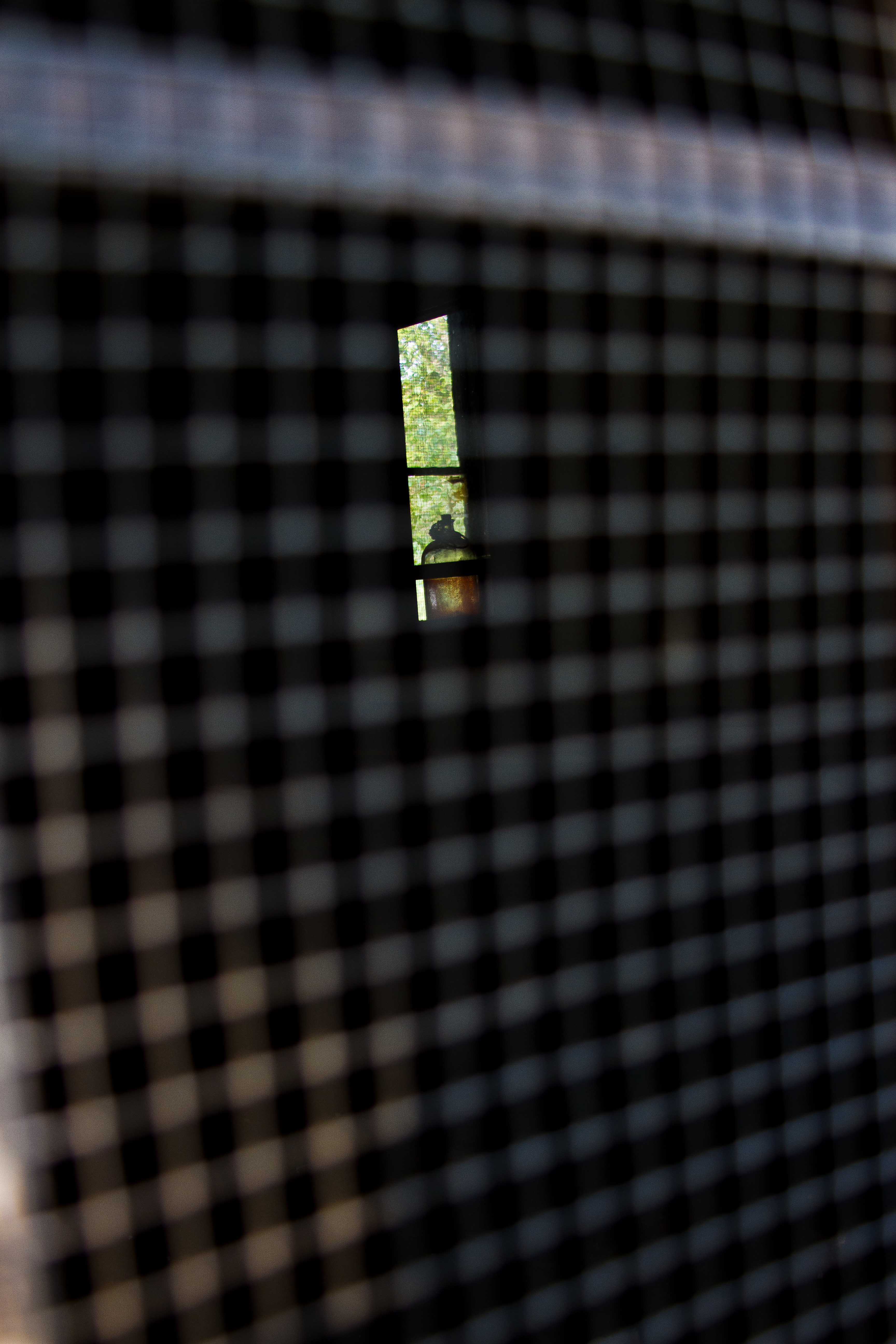 Peeking in the windows, there was still some furniture and other assorted items left behind. The architectural details were impressive inside at some places, considering the basic wooden design of the outside of the building. I would have loved to have gotten inside, but the doors were all locked and windows secured tightly. If there was an opening, it would have been fair game. Shining through the darkness from a room at the opposite end of the building was a partially full glass jug of liquid glowing in the depths of the depot. The wire from the windows lent to a nice effect.