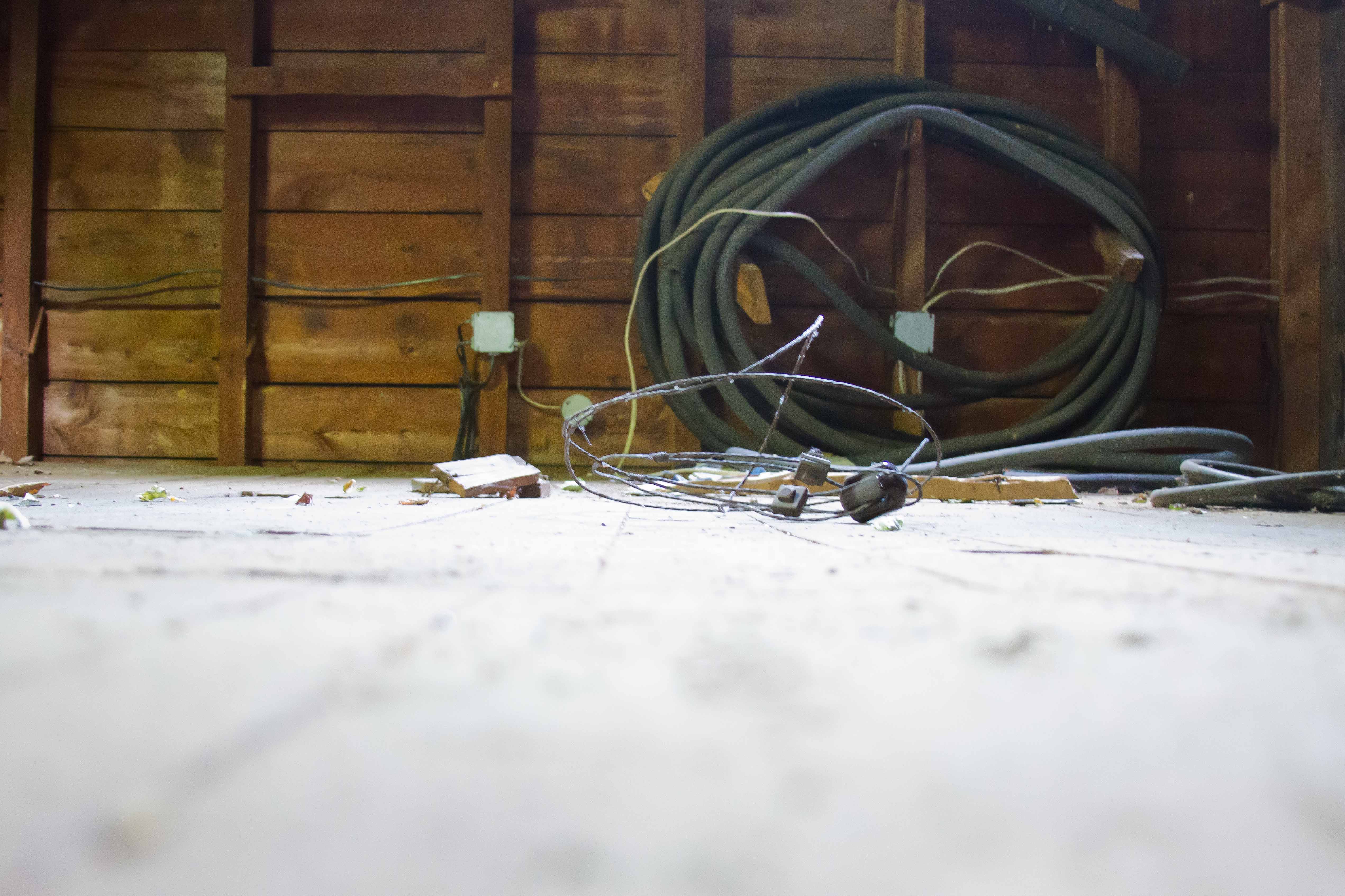 Walking into the darkened rooms I came upon a wooden stairway. It was still secure and stable, so I climbed on up. Nothing much but some shelves and storage of random items that were probably used on a regular basis when this place was active.