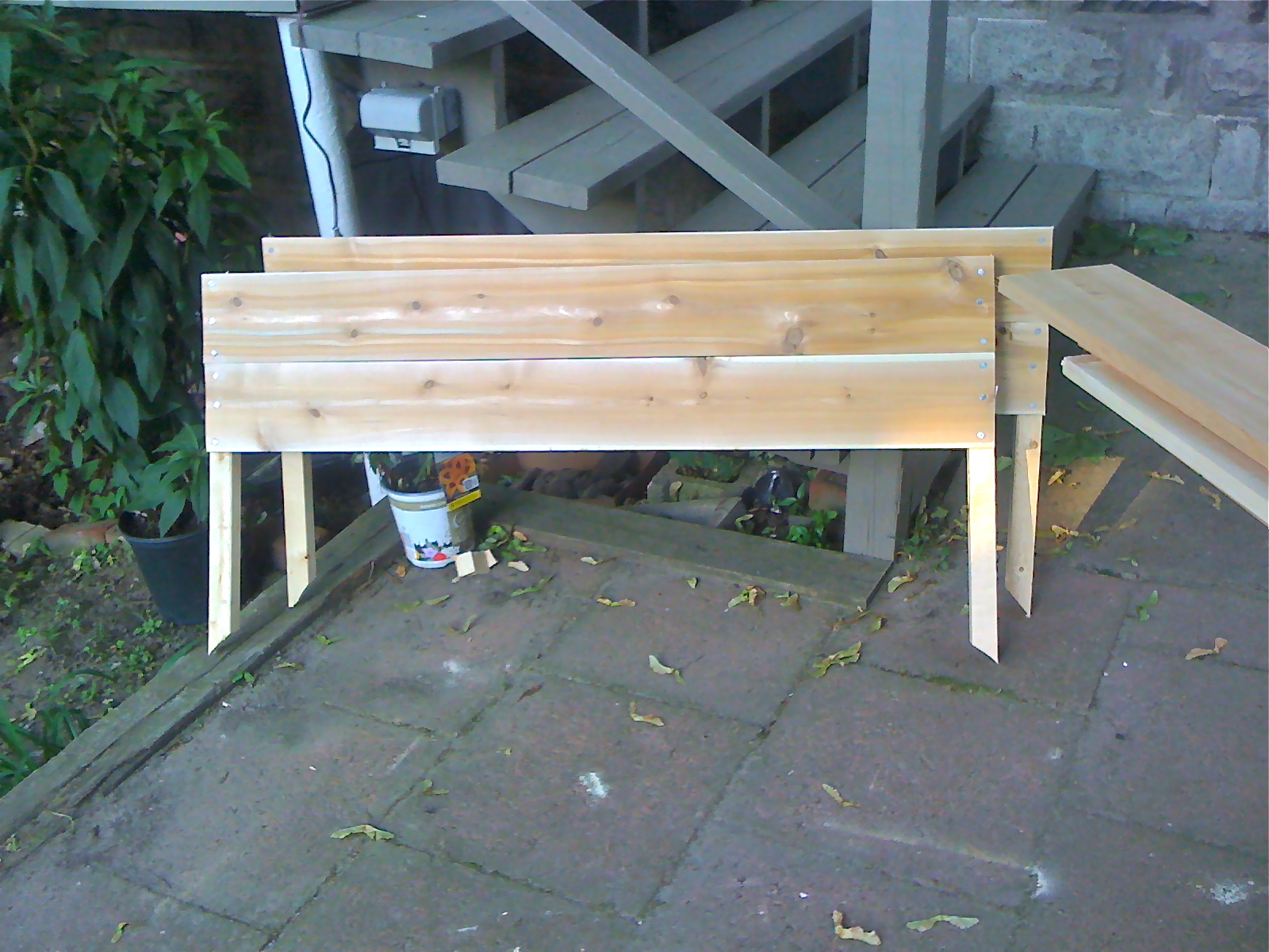 Next, I nailed the longer 6-foot boards to the stakes to finish the assembly of the garden bed.