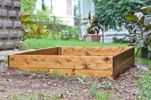 Living in the city, I don’t trust the soil to grow edible things. Digging around in my yard, I’ve found about a zillion rusty nails, cans, scrap metal, plastic pieces and various other non-compostable items. And whenever it rains, it seems that there is a new layer of broken glass pieces that surface from underneath. So this spring (yes, like 5 months ago) I decided I wanted a veggie garden and decided to make my own raised bed to have in a section of the yard.