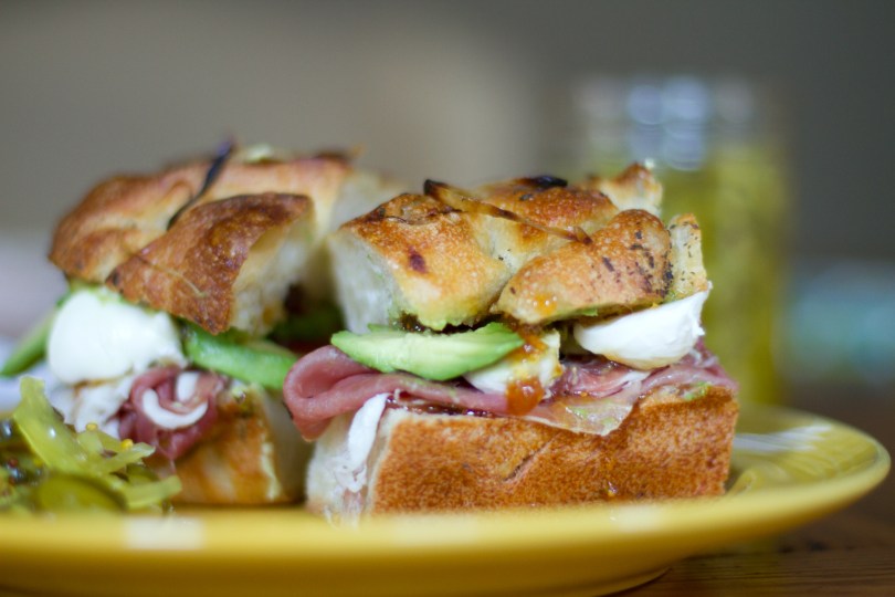 Prosciutto, Mozzarella and Fig Compote on Focaccia.