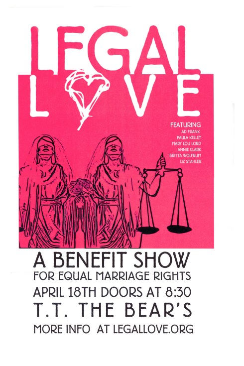 The club made me and Joey feel so secure and comfortable and safe that we asked Bonney, T.T.’s owner of 43 years, if we could host a same-sex marriage music benefit The answer was, as is most often the case with Bonney, “Yes!”.